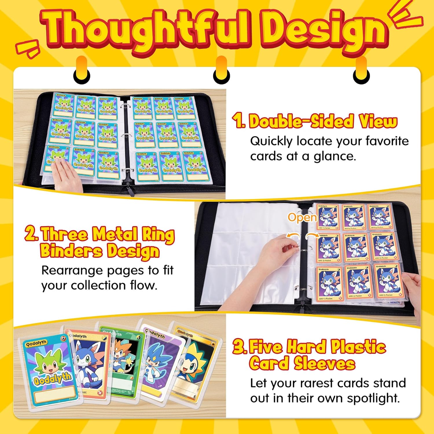 Card Binder – 9 Pocket Zipper Collection Album, Premium PU Holder, Dou – Qodalyth