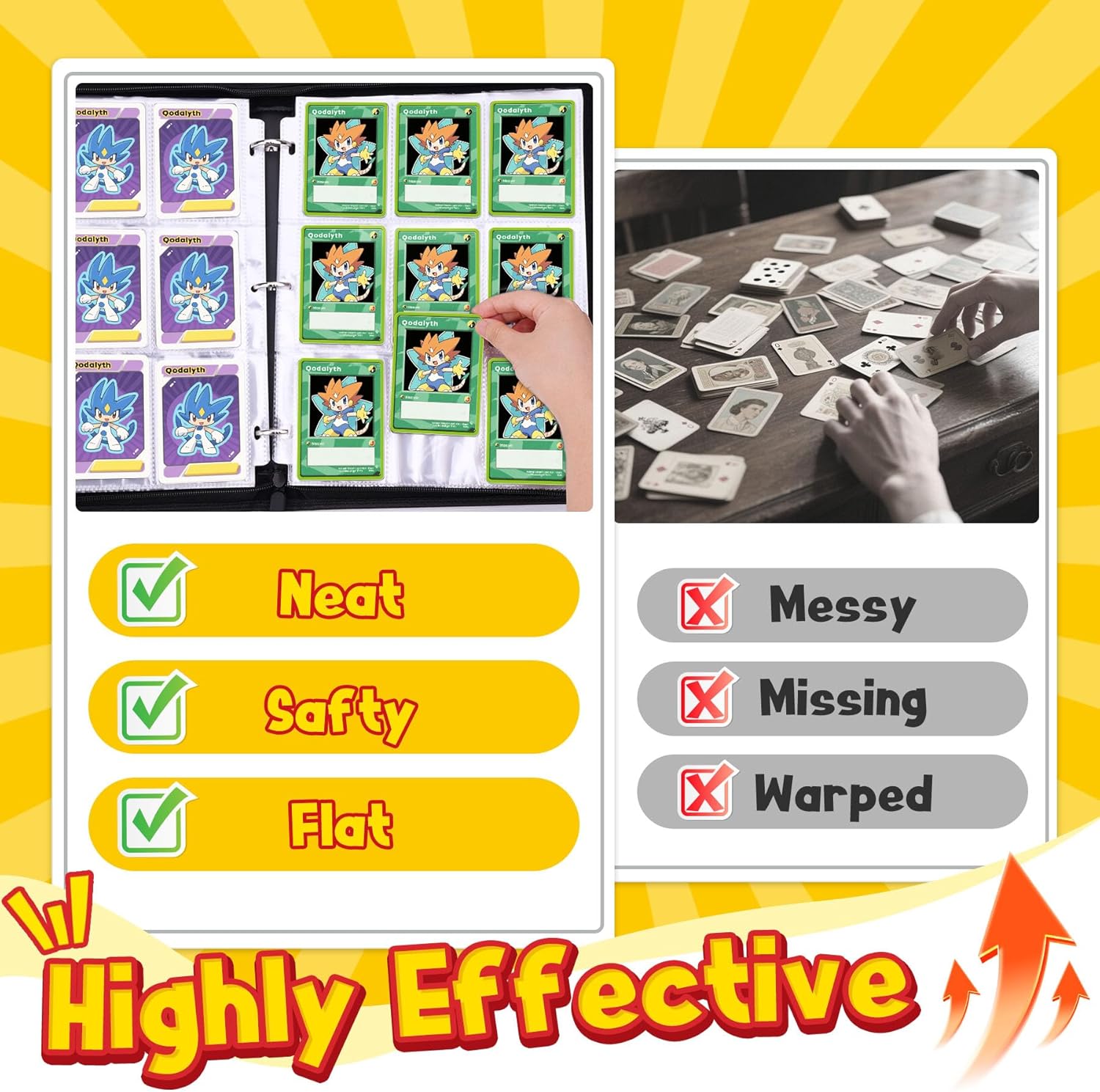 • Smooth Card Collection: The card binder features an ingenious design with a 13.1×10.6×2 inch size and 2.7×3.6 inch pockets, Perfectly fits TCG/MTG/Sport Cards and other standard-sized tranding cards. Cards slip in effortlessly, settling in place as coming home—secure and flat