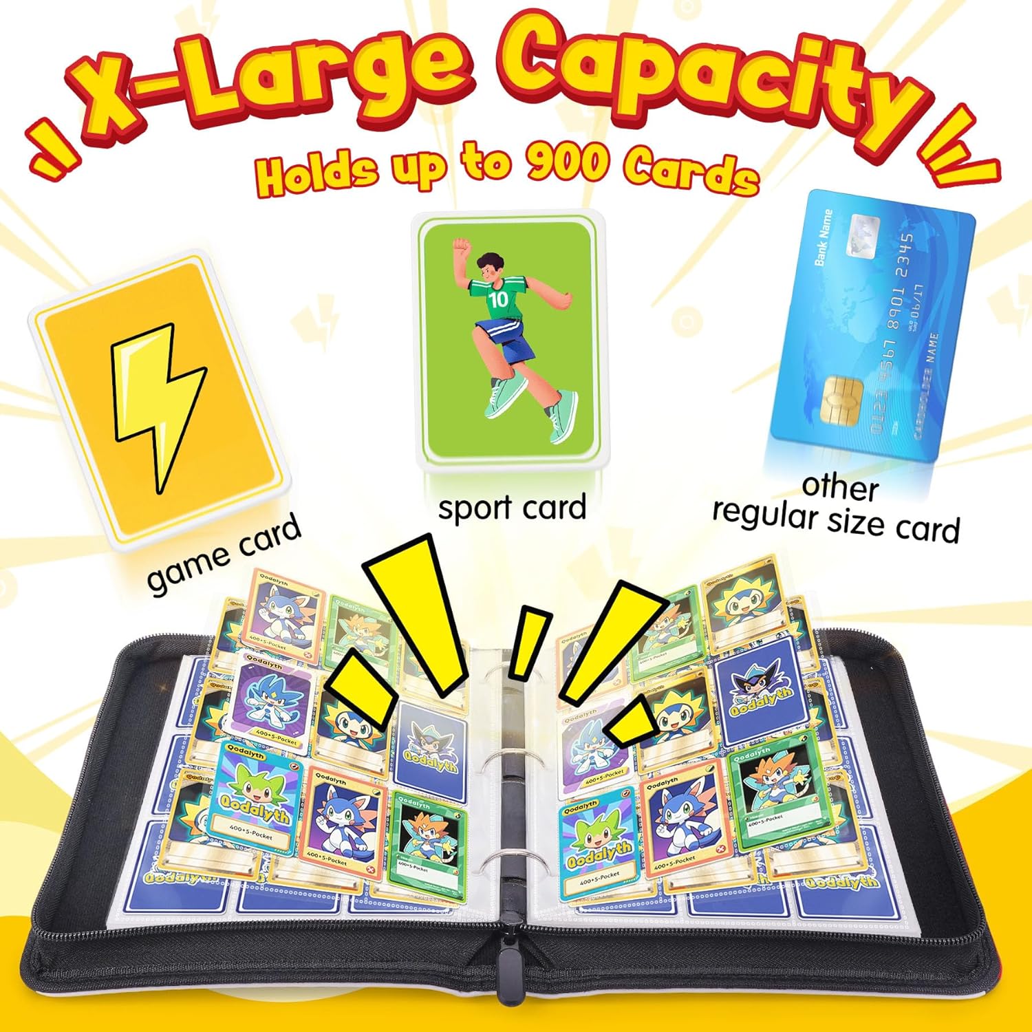 • Organized Display: The 9-pocket, double-sided design holds up to 900 cards, easily accommodating your growing collection. Includes 5 hard plastic card sleeves, providing exclusive display arenas for your prized valuable cards and highlighting their unique charm